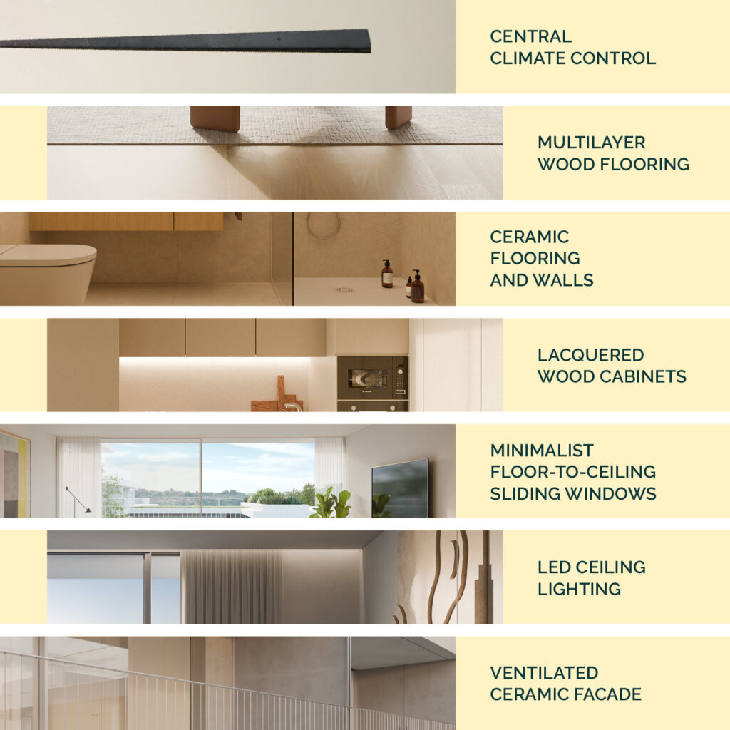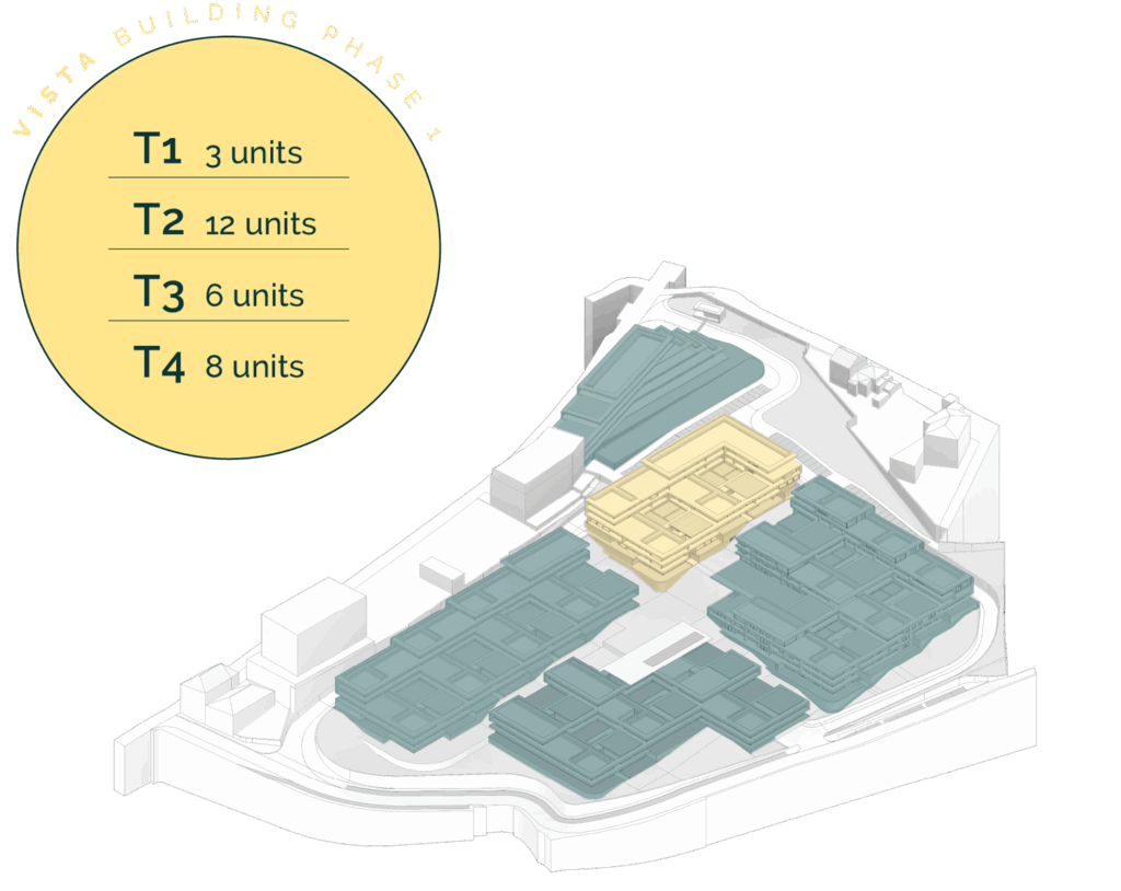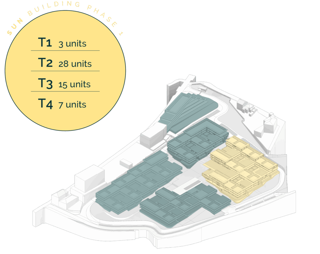 T1 — 61 sqm to 88 sqm | T2 — 80 sqm to 124 sqm | T3 — 125 sqm to 173 sqm | T4 — 159 sqm to 203 sqm